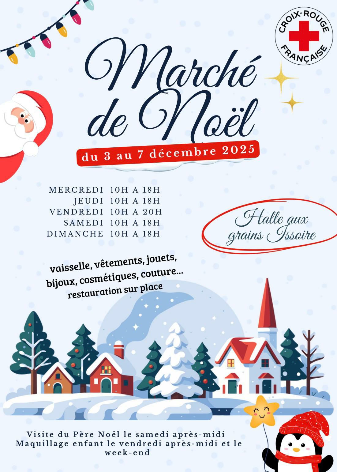 Venez retrouvez les bénévoles de l’unité locale d’Issoire à l’occasion de leur traditionnel marché de Noël. Vaisselle, couture, produits de beautés ou encore vêtements et jouets il y en aura pour tous ! Rendez-vous Halle au Grains à Issoire du 3 au 7 décembre !